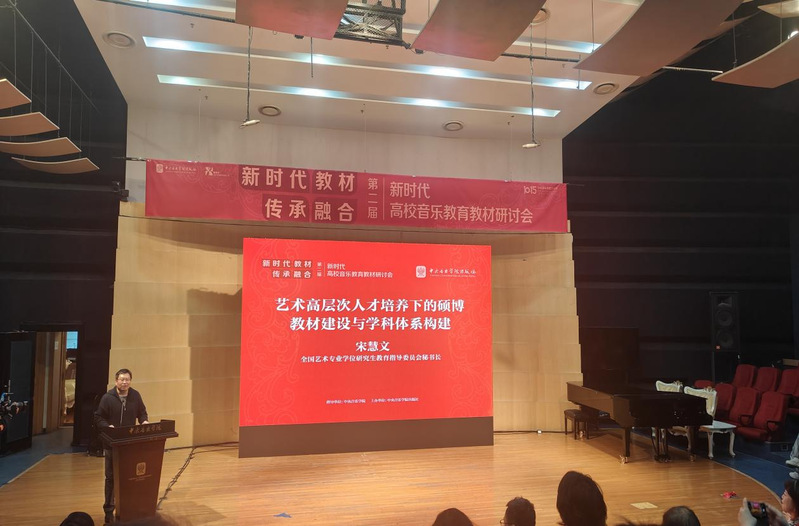 2025年11月13日至16日,第二届新时代高校音乐教育教材研讨会在中央音乐学院隆重召开,本次研讨会旨在通过高质量的学术对话推动高校音乐教育创新发展,以实际行动服务教育强国建设大局。我院音乐系系主任张国仲副教授、理论教研室主任李文川老师受邀参加了会议。本次研讨会的主题“新时代·教材·传承·融合”,会议由中央音乐学院出版社社长赵海教授主持。