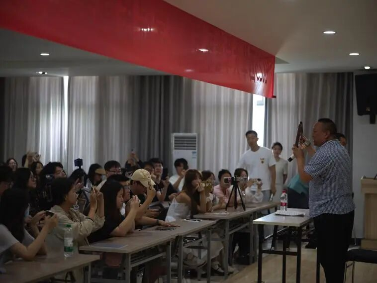 党课现场,三位国家级非遗传承人依次登台,把课堂变成“活的博物馆”。宁夏“花儿”传承人唐祥老师先以一首高亢的山歌开场,随后剖析“花儿”的颤音、滑腔与即兴填词规律,邀请党员师生现场对歌体验,用实例说明“山歌是脚板走出来的,也是心窝唱出来的”。庆阳唢呐艺术研习所马自刚老师带来两首代表作,边吹边讲:从“循环换气”到“借字变调”,从红白事曲牌到军旅新编,逐一拆解指法与气息细节,并示范如何把爵士切分节奏融入传统板式。师生们记录笔记27页,在互动环节试吹后感慨“唢呐一响,不只是声音,是西北的年轮和烟火”。秦安小曲传承人贾彦荣、姚常德两位老师压轴出场,介绍被誉为“中国曲艺活化石”的秦安老调:从明代洪武年间的形成,到2008年入选第二批国家级非遗的历程;现场演唱经典段落,用方言道白、板胡托腔,还原“炕头坐唱、灯影摇曳”的古老场景。短短两小时,党员师生完成了一次从“听热闹”到“看门道”的转换,也为后续课程思政积累了原生态视频、曲谱和口述史材料。