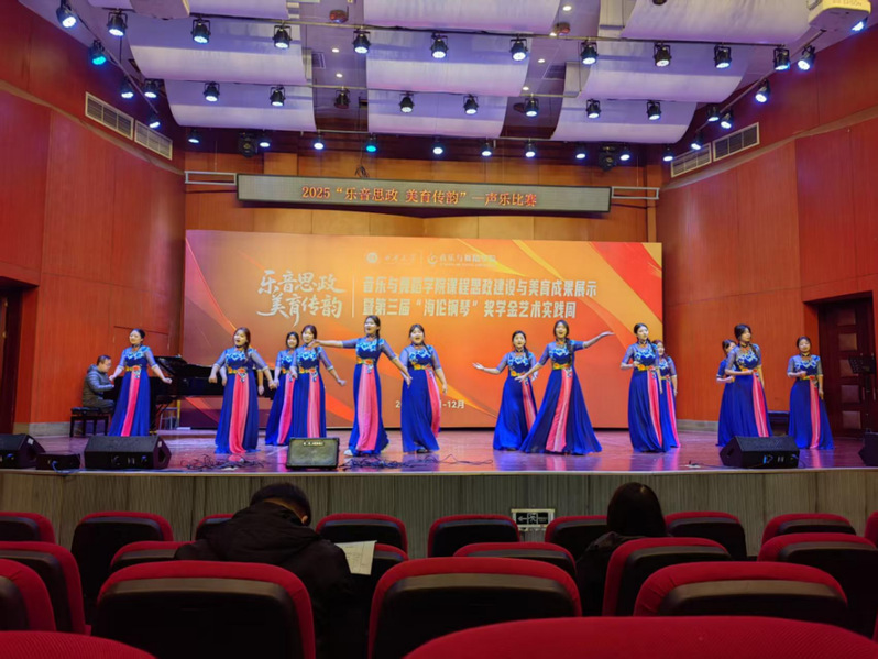 2025年11月26日上午10点,音乐与舞蹈学院艺术大楼音乐厅内歌声飞扬、气氛热烈。“乐音思政,美育传韵”课程思政建设与美育成果展示暨“第三届海伦钢琴”奖学金艺术实践周声乐专场比赛在此成功举办。本次活动集中展示了学院在声乐教学与实践方面的丰硕成果,是推动专业教学与思政教育、美育教育深度融合的重要实践。