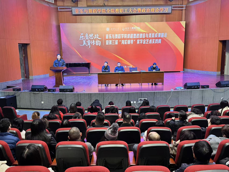 12月4日下午,音乐与舞蹈学院在艺术大楼音乐厅召开全院教职工大会,开展政治理论学习并部署近期重点工作。会议由学院院长向琛子主持,全院教职工参加会议。