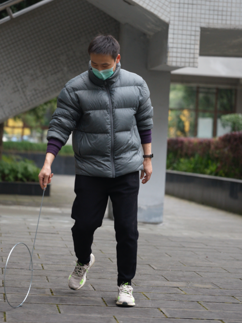比赛前,由学院工会文体委员杨科首先进行了示范,即使用标准铁环与推钩,从起点出发,控制铁环绕过休息区中央的水池一周,并返回起点,全程保持铁环不倒、路线合规方为成功。这不仅考验选手的手眼协调、身体平衡与控环技巧,更增添了绕障行驶的趣味性与挑战性。