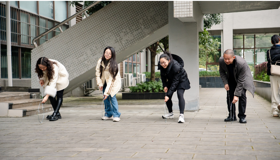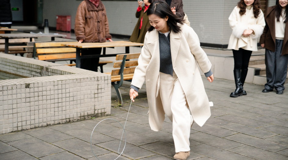 比赛分为两个阶段进行。首先,各支队伍内部进行热身与初步选拔,老师们纷纷重拾童年技能,或驾轻就熟,或略显生疏,现场充满了尝试与欢笑的温馨氛围。经过内部交流与切磋,各队推选出本系的“控环高手”进入最终决赛。围观老师们自发组成啦啦队,为选手们每一次成功的绕行喝彩,也为偶尔的“失误”送上鼓励的笑声与掌声,比赛气氛热烈而融洽。
