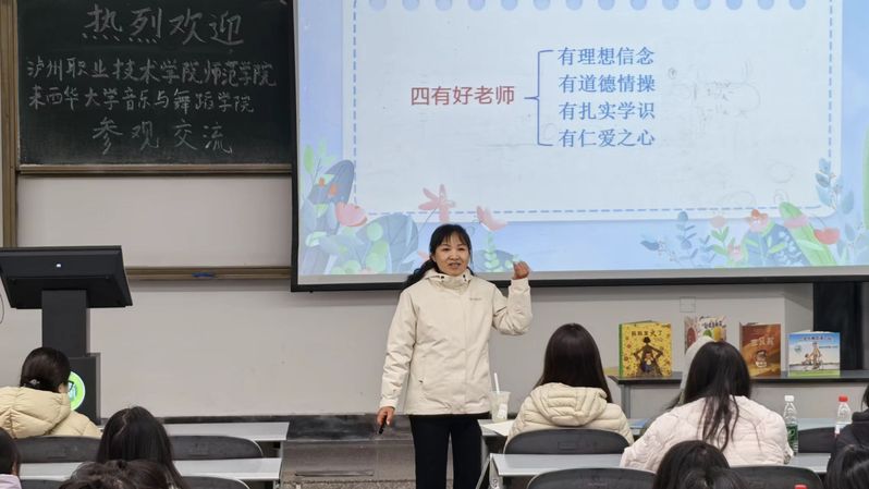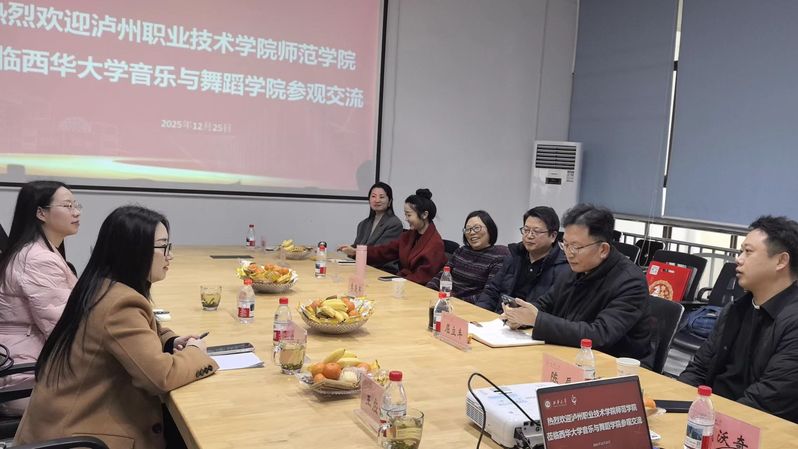 2025年12月25日,泸州职业技术学院师范学院师生代表到访西华大学音乐与舞蹈学院,与我院2022级学前教育专业师生围绕专业建设、人才培养及论文指导等内容开展交流。活动以“共话学前教育,共育未来教师”为主题,进一步深化了两校间的友好合作。