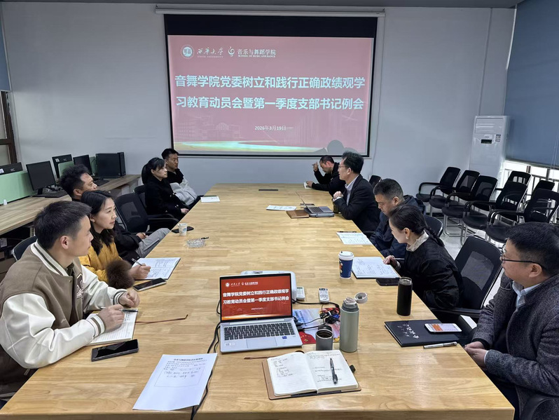 为进一步强化党员干部的理论武装,推动正确政绩观在基层落地生根,3月19日下午,音乐与舞蹈学院党委在艺C-201会议室组织召开树立和践行正确政绩观学习教育动员会暨2026年第一季度支部书记例会。学院党委委员、各党支部书记参加会议,会议由学院党委书记屈立丰主持。
